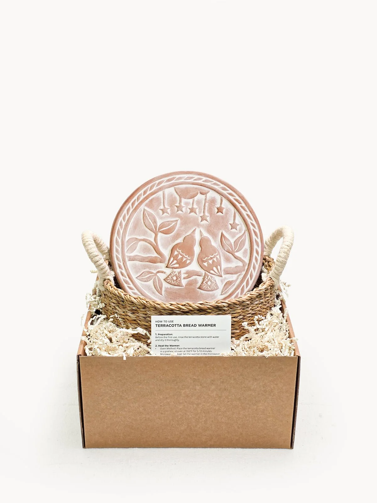 There’s nothing quite like the smell of warm bread on the weekend. Here, our terracotta plate has been engraved with lovebirds and cut to fit neatly into a round basket. This special bread warmer is naturally insulating, and the basket itself has been handwoven from sustainably grown seagrass. It’s the best gift item for anyone who loves bread!